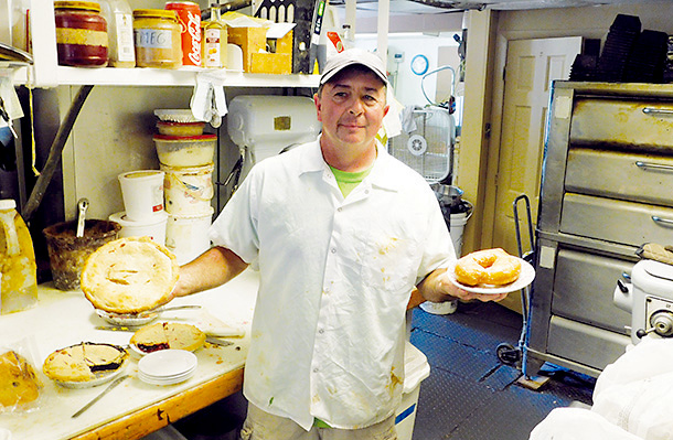 Always known for their fine breakfast, (try to find a seat there on a weekend morning), they are also famous for their baked goods, made on premises. Homemade bread, rolls, glazed donuts, and of course, the pies. They sell over 500 pies Thanksgiving Week every year.