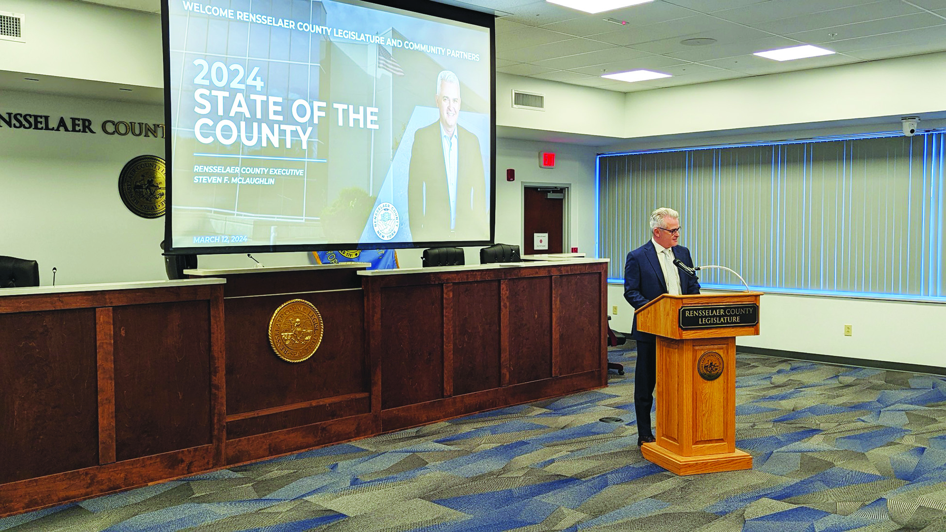 On Tuesday, March 12th, Rensselaer County Executive Steve McLaughlin delivered his annual State of the County (SOTC) address for 2024, in the legislative chambers at 99 Troy Road in East Greenbush. McLaughlin began by leading legislators in a moment of silence for Casey Frankoski, who was killed last week in a helicopter crash while patrolling the Texas-Mexico border with the National Guard.